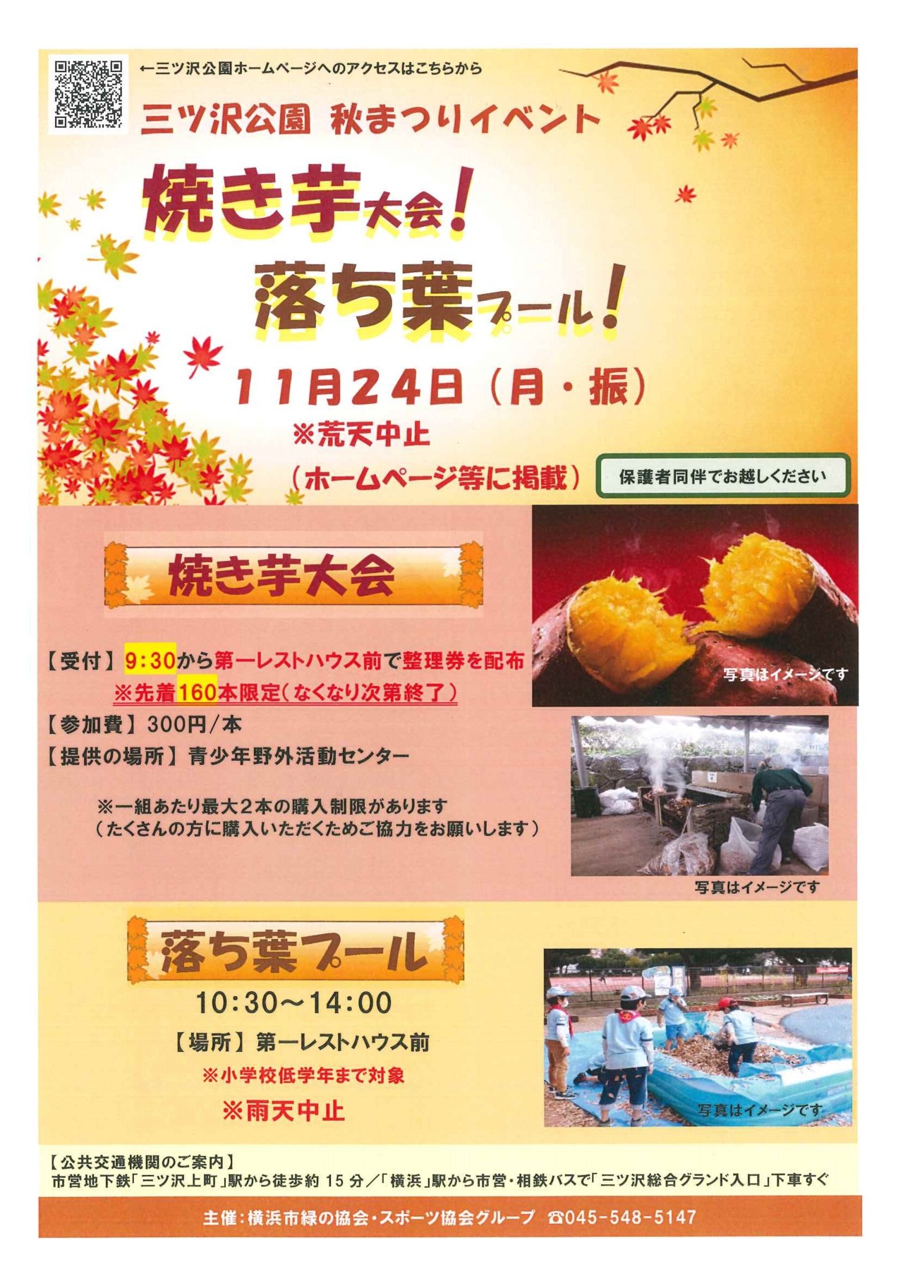 【対象年齢】小学校低学年まで ※雨天中止 保護者同伴でご参加ください♪ 詳しくは、三ツ沢公園HPをご確認ください。